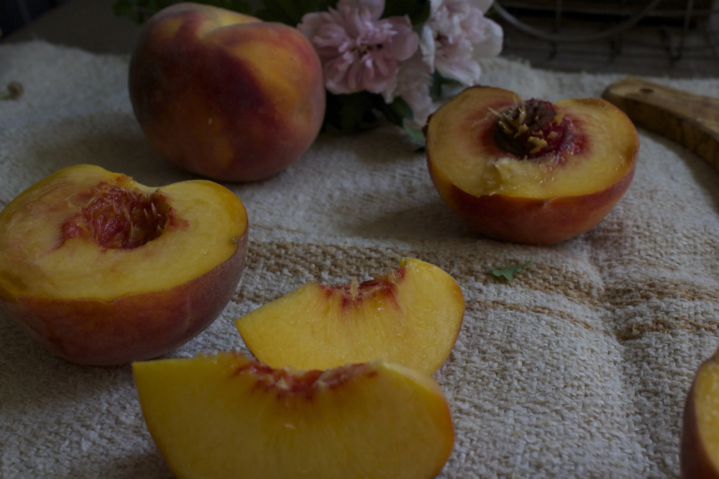This cake is the yummiest, and a favorite at our house. The recipe is from one of my very close friends. I first ate this yummy almond cake at her house and have been smitten ever since! Peach season is such a short moment that I knew I had to make a recipe with peaches in it sometime during the month of August!  My biggest dilemma was that I didn't want to cook the peaches, I wanted the fresh, juicy flavor to speak for itself. So, this cake came to my mind - since it's usually served with fresh berries and cream, I thought, why not peaches? It was delicious. The fresh peach flavor complimented the moist almond cake perfectly and, once again, this versatile little cake was winning hearts. It was my Grandpa's 86th birthday celebration this past Sunday and so this is what I made for his birthday cake. It may look like a humble little cake, but let me tell you, if you're an almond lover like me, this will be your new favorite thing!